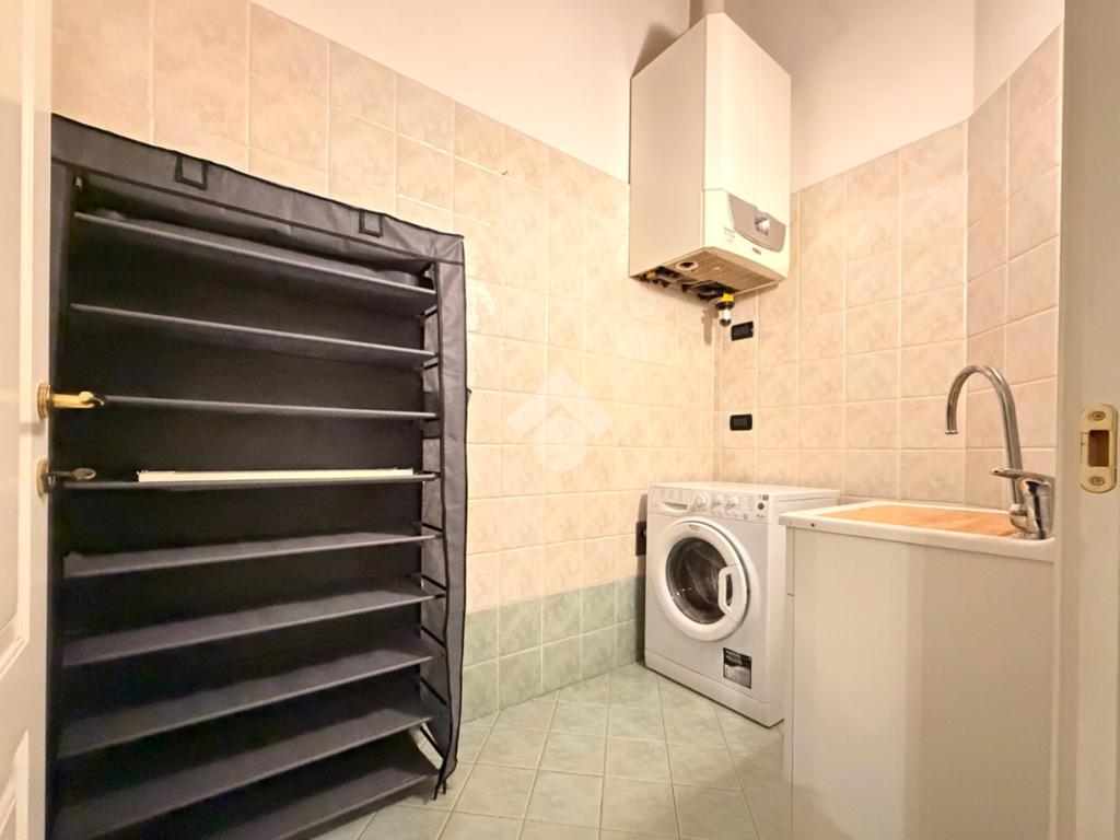 La proprietà comprende un soggiorno con angolo cottura, camera matrimoniale con cabina armadio, camera singola, bagno e lavanderia, ideali per chi cerca un ambiente funzionale e confortevole.