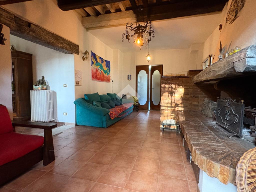 Al piano terra, l'abitazione offre un'accogliente zona giorno con stufa a pellet,e un grande camino in pietra ideale per creare un'atmosfera calda e confortevole.