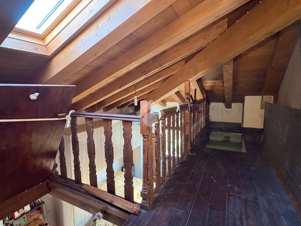 Dalla camera da letto con un ulteriore scala in legno si accede ad un sottotetto finito con una ringhiera che si affaccia sulla zona notte da usare come ripostiglio o cantina.