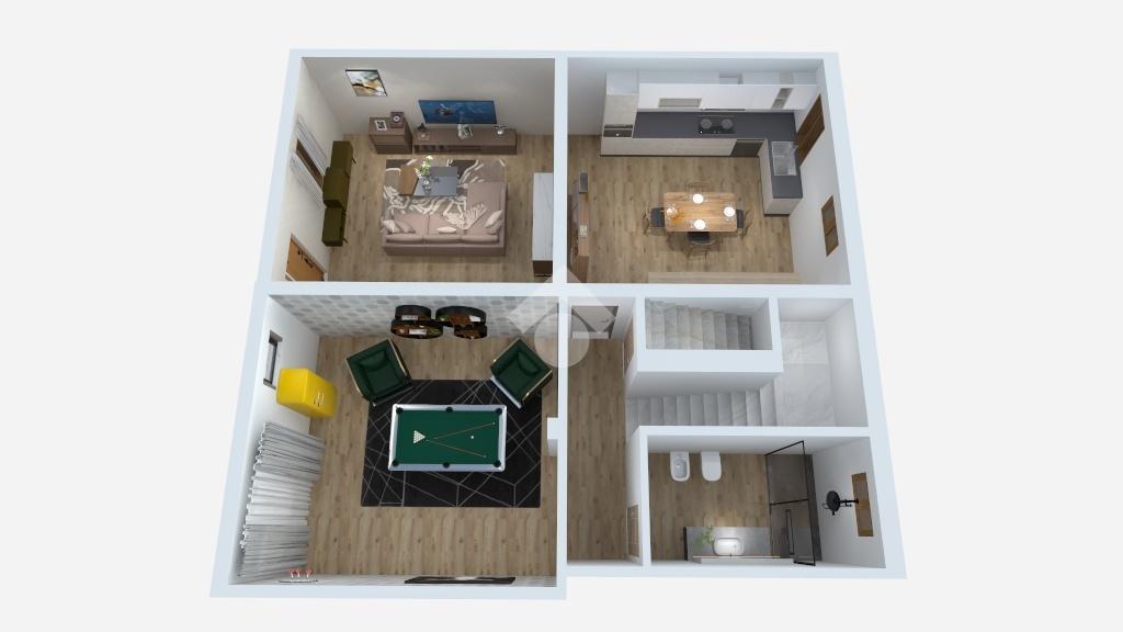 Il progetto attualmente prevede un ampio soggiorno con cucina abitabile, disimpegno e bagno al piano terra. Salendo al primo piano, la zona notte composta da tre camere, di cui due matrimoniali ed una doppia e due bagni. Oltre ad uno spazioso sottotetto.